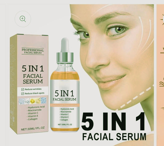 5 In 1 Facial Serum Fade Fine Lines Firming Skin Shrink Pores Moisturizing Brightning Vitamin C Hyaluronic Acid Face Serum