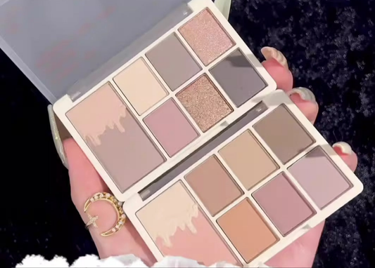 9-Color Mini Eyeshadow Palette – Milk Tea Shades in Matte, Shimmer & Fine Glitter | Perfect for Daily & Student-Friendly Makeup